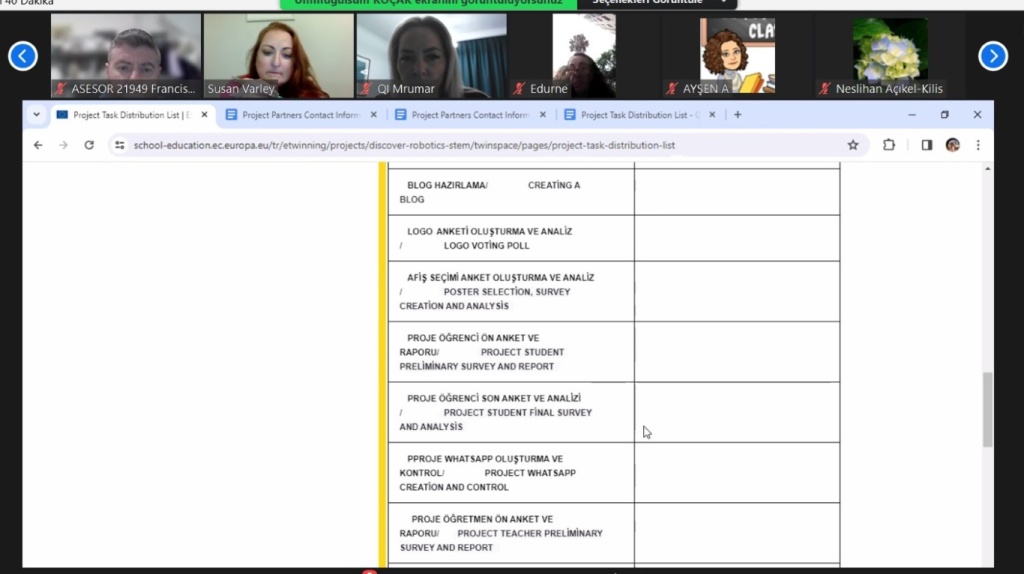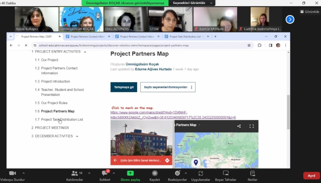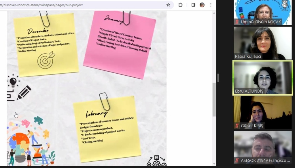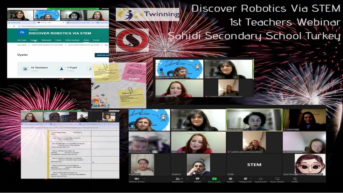 Discover Robotics Via STEM eTwinning projemizde, 6 farklı Ülkeden 14 öğretmenin katılımıyla ilk webinarmızı gerçekleştirdik. Toplantıda eTwinning projemizin amaçları, beklenen sonuçları, ortakların görevleri ve aylık faaliyetler konuşuldu.