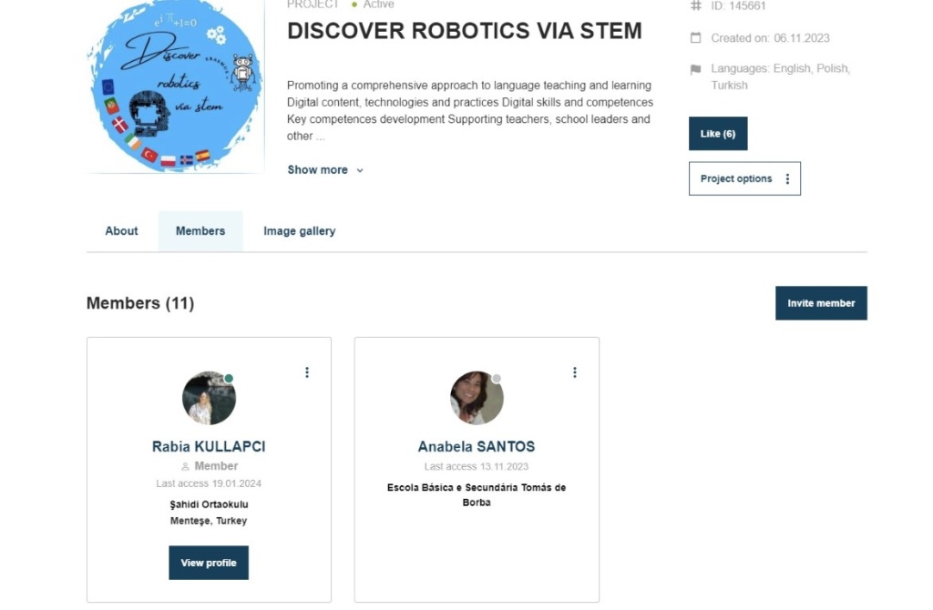 2022-1-PL01-KA220-SCH-000089298 nolu "Discover Robotics Via STEM" isimli erasmus projemizi, sanalda desteklemek amacıyla yine aynı isimde bir eTwinning projesi başlattık. Projemizin kurucuları Türkiye'den "Çetin Şen Bilim ve Sanat Merkezi" ve Polonya'dan "Szkoła Podstawowa nr 4 im. ks. Stefana Pieczki w Raciborzu" okuludur. Projemizin diğer ortakları İspanya'dan "IES Medina Albaida", "IES Profesor Martín Miranda San Cristóbal de la Laguna, ve "Instituto de Enseñanza Secundaria Kursaal", Portekiz'den "Escola Básica e Secundária Tomás de Borba" , İrlanda'dan "Muslim National School, Clonskeagh, Dublin" , İzlanda'da "Móðurmál samtök um Rússneskt tvityngi" ,Türkiye'den "Kilis Bilim ve Sanat Merkezi", "Kırıkkale İl Özel İdaresi Bilim ve Sanat Merkezi", "Çorum Bilim ve Sanat Merkezi", "Uşak Turhan Akçay Bilim ve Sanat Merkezi" okullarıdır.