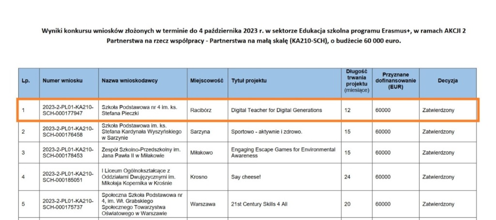 Okulumuz adına yazdığımız ve başvuru yaptığımız; Polonya (Raciborz) Koordinatörlüğünde, Türkiye (Okulumuz), Çekya (Ostrava), İspanya (Madrid), Fransa (Antibes) ortaklığı ile kurulan, Erasmus+ Okul Eğitiminde Küçük Ölçekli Ortaklıklar (KA210) projemiz kabul edilmiştir. Okulumuza, İlimize ve ilçemize hayırlı olsun.