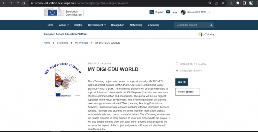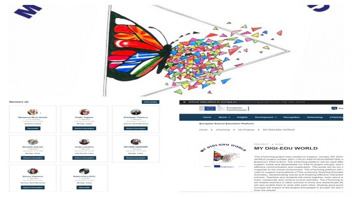 2021-1-PL01-KA210-SCH-000027305 nolu MY DIGI-EDU WORLD isimli erasmus projemizi, sanalda desteklemek amacıyla yine aynı isimde bir eTwinning projesi başlattık. Projemizin kurucuları Türkiye'den "Şahidi Ortaokulu" ve Polonya'dan "Szkoła Podstawowa nr 4 im. ks. Stefana Pieczki w Raciborzu" okuludur. Projemizin diğer ortakları Kuzey Makedonya'dan SOU "Jane Sandanski" okulu ve Letonya'dan "Skujenes pamatskola" okuludur.