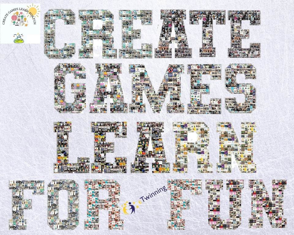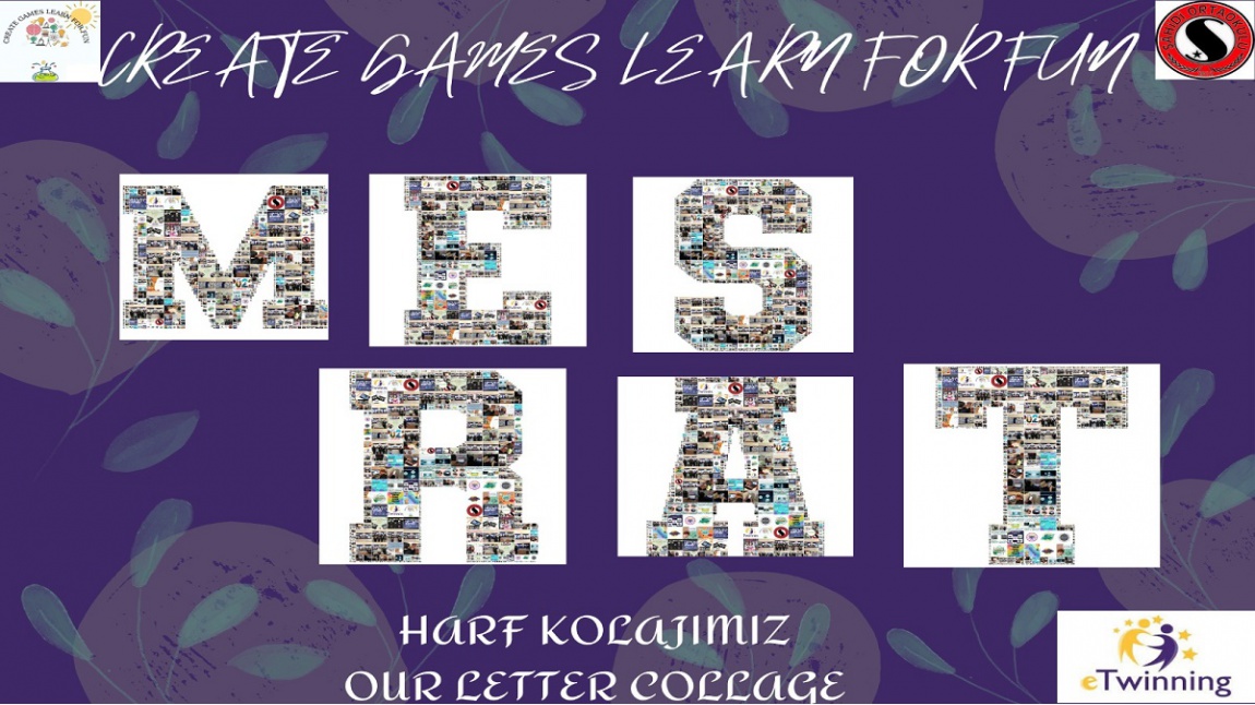 Proje ekibimizdeki tüm ortaklara Projemizin İsmi olan '' Create Gamen Learn For Fun'' ve ''Oyunlar Yaratın, Eğlenerek Öğrenin'' yazısındaki harfler kurucumuz tarafından paylaştırıldı. Üzerimize düşen harfleri projemizde kullandığımız tüm resimleri kolajları seçerek PHINISH web2 aracını kullanarak kolajledık. yaparken oldukça eğlendik ve okulların oluşturduğu harf kolajını birleştirince ço güzel bir görüntü ortaya çıktı.