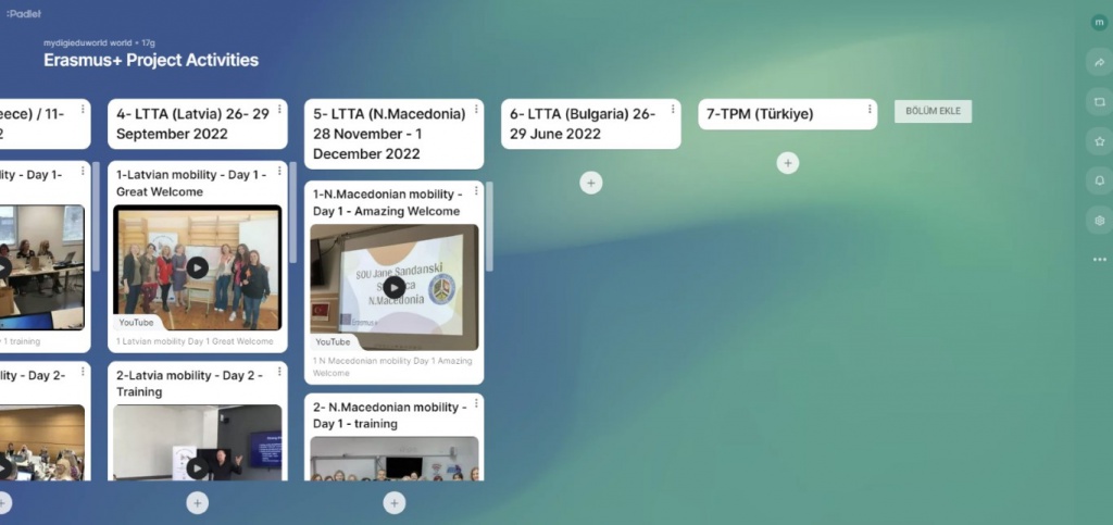 MY DIGI-EDU WORLD Projemizin Padlet Sayfasını Oluşturduk.