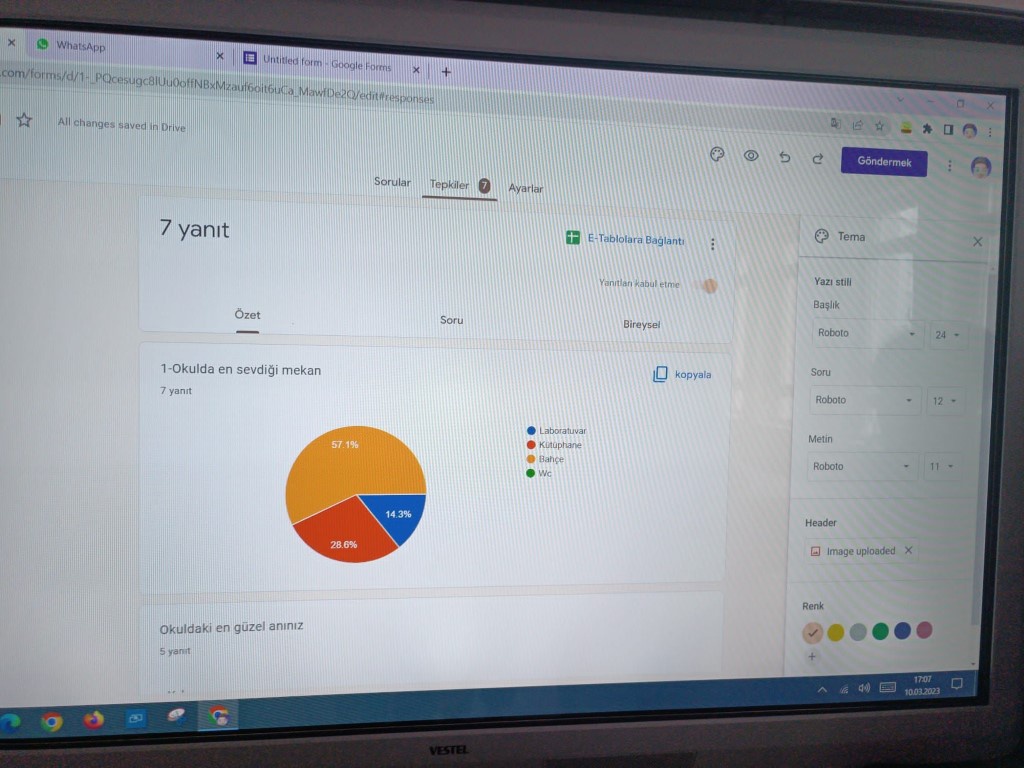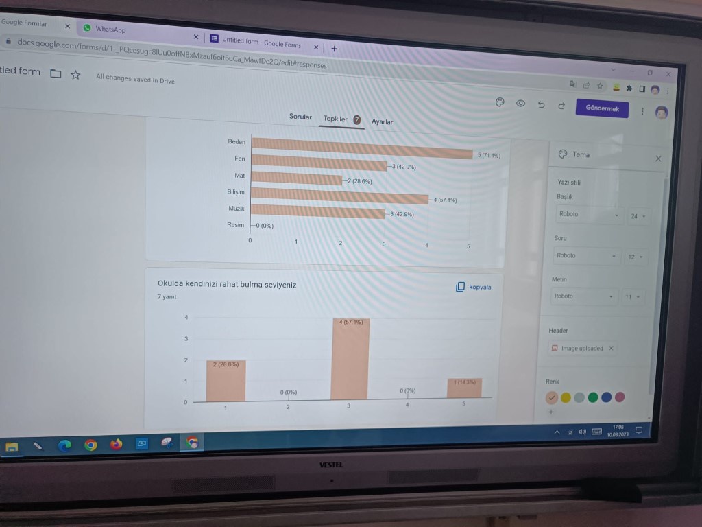 6.sınıf öğrencilerimize anket hazırlayacakları bir araç olan Google form kullanmayı öğrettik.