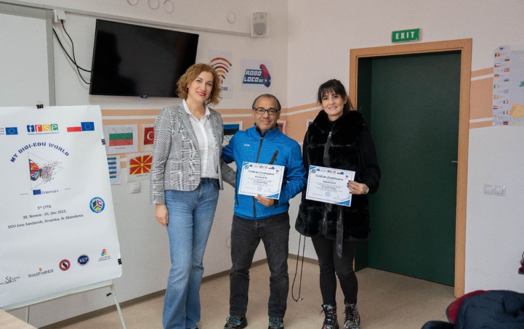 2021-1-PL01-KA210-SCH-000027305 nolu MY DIGI-EDU WORLD projemizin 4. Eğitim faaliyetini Kuzey Makedonya'nın Strumica şehrinde gerçekleştirdik. Okulumuzdan 2 öğretmenin katıldığı hareketlilik, 28 Kasım - 1 Aralık 2022 tarihleri arasında gerçekleştirildi. 4 gün süren eğitimin 2.gününde öğrencilerimizle sanal olarak buluşup aldığımız eğitimden onlarında yararlannmasını sağladık. Ülkemizi başarı ile temsil eden öğretmenlerimize şükranlarımızı sunuyoruz.