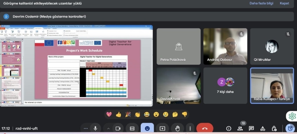 2023-2-PL01-KA210-SCH-000177947 proje numaralı “Digital Teacher for Digital Generations” isimli Erasmus+ projemizin kapanış toplantısını 20-21 Mart 2025 tarihinde tüm ortakların katılımıyla gerçekleştirdik.