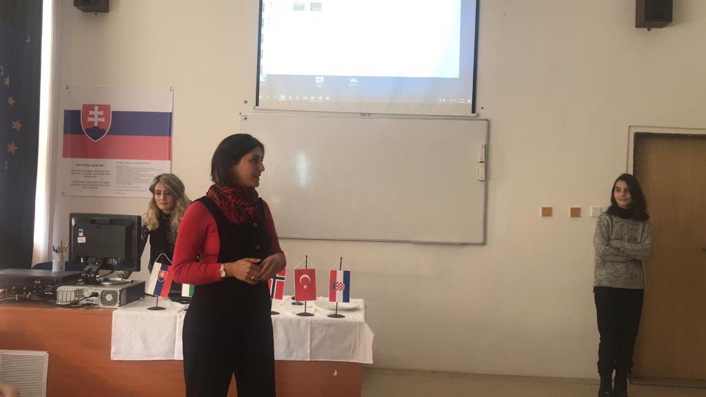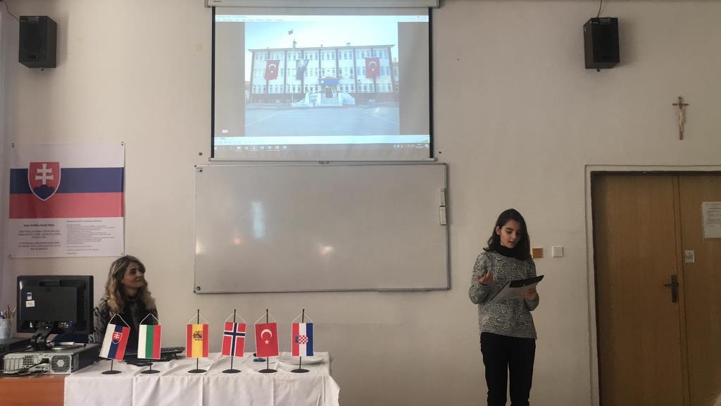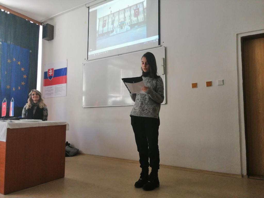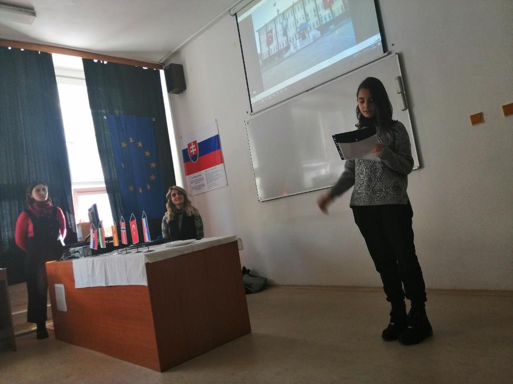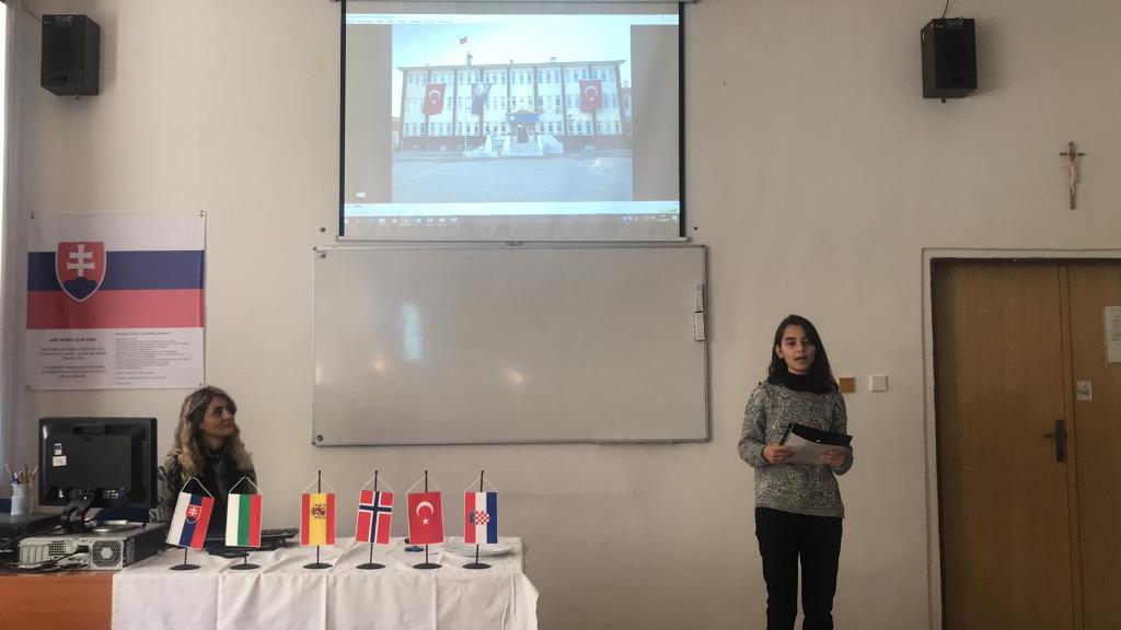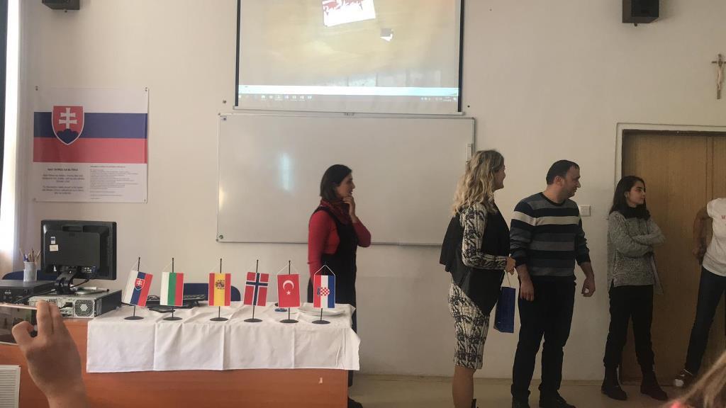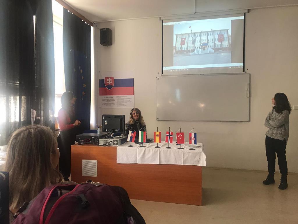3 Aralık 2019 Salı günü Levice'deki ikinci günümüzde okulda, öğrenciler ve öğretmenler tarafından çok güzel bir şekilde karşılandık. Öğrenciler bize Slovakça danslarını gösterdiler, bu bizim için çok iyi bir anıydı. Kısa bir sanatsal programın ardından tüm ülkelerden öğretmenler ve öğrenciler okullarını ve ülkelerini birbirleriyle tanıştırdılar. Sonra lezzetli bir öğle yemeği için okul kantinine davet edildik.