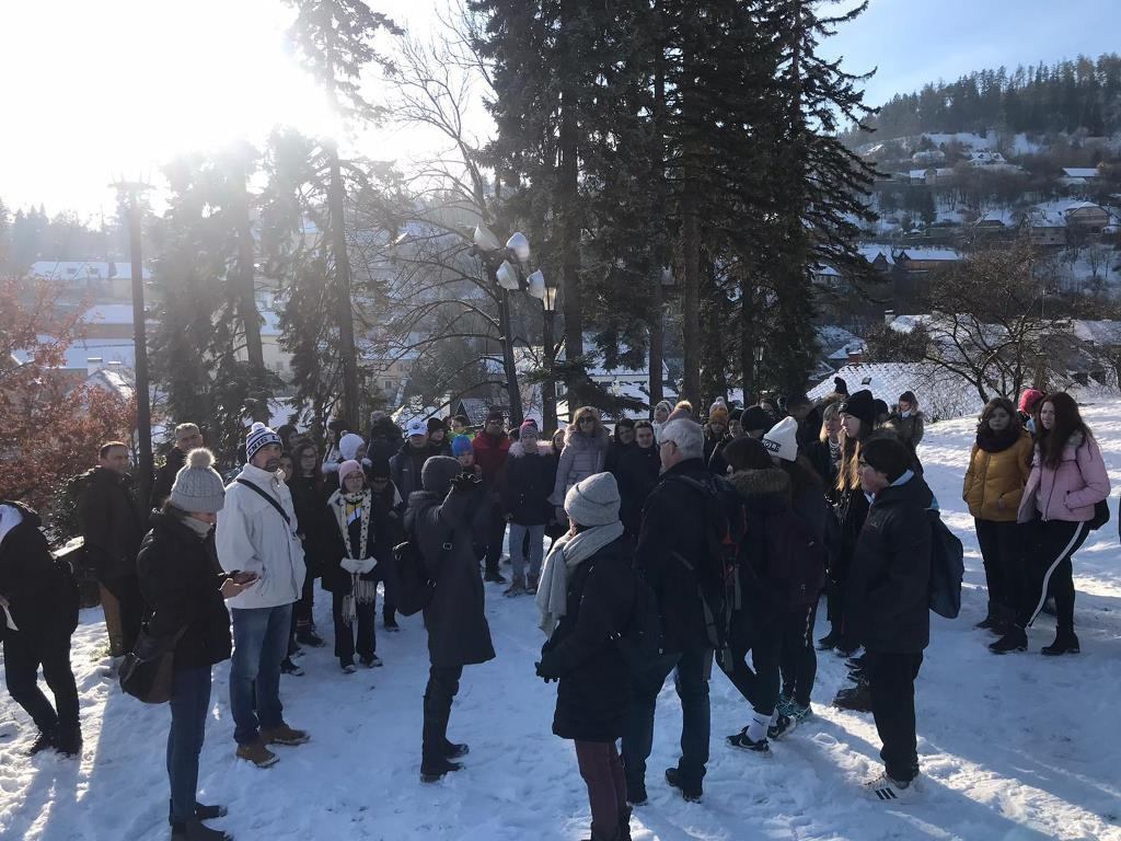 4 Aralık 2019 Çarşamba günü Banska Stiavnica'ya gittik. Calvary Dağı'na tırmandık ve tepedeki kırmızı kiliseden grupça çok güzel fotoğraflar çektik. Daha sonra şehir merkezine gittik, UNESCO kültür mirasında olan bu küçük yerleşim yerinin caddelerinde dolaşıp Katolicka Skola okulunda öğle yemeği molası verdik. Burada farklı ülkelerden gelen tüm öğretmenler ve öğrenciler toplu halde yemeklerini yediler, ardından dünyanın en uzun aşk şiirinin yazılmasına neden olan Marina ile Andrej Sladkovic'in aşk hikayelerine tanık olduk. Bu hikayeyi anlatan aşk bankası müzesini ziyaret ettik.
